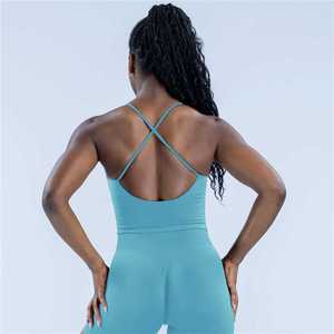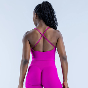 DFYNE亚马逊高弹全消光细肩后交叉背心大美背无缝健身吊带背心