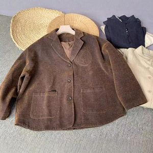加厚秋冬西装领纯色短款外套秋季休闲通勤西装外套美拉德棕色上衣
