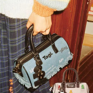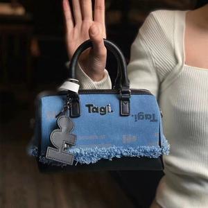 tagi新迷你波士顿包小众手提女包尼龙拼皮百宝箱肩斜挎枕头包