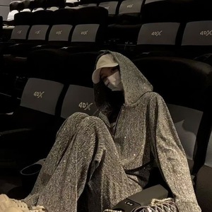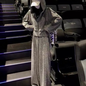 高级感烫钻烫金运动套装女秋冬运动服欧美风休闲宽松显瘦连帽卫衣