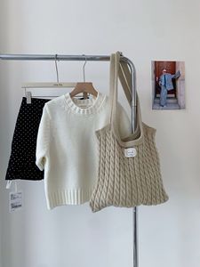 韩代款简约手拎大包包女2025秋新款潮百搭洋气单肩毛线针织托特包