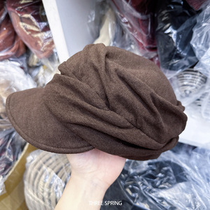 批发韩国2025年早秋新款褶皱贝雷帽英伦风八角帽显脸小时髦画家帽