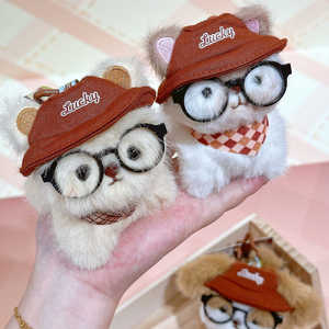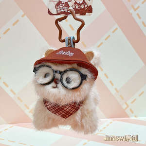 Jinnew 原创暖暖巧克力-趴趴小崽戴眼镜毛绒钥匙扣挂件可爱包挂饰