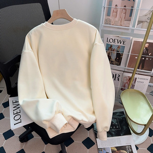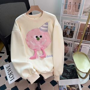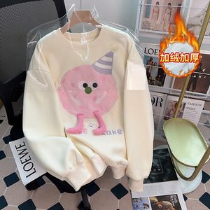 奶fufu减龄玩偶圆领卫衣女秋冬设计感加绒重工卡通刺绣宽松上衣女