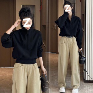 黑色上衣+卡其裤子【两件套】