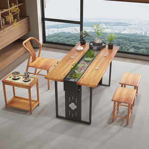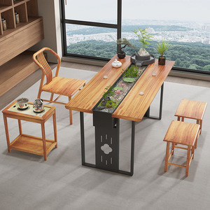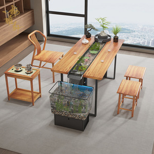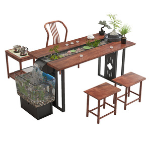 乌金木流水茶台养鱼循环景观茶桌简约客厅新中式小型泡茶桌椅组合