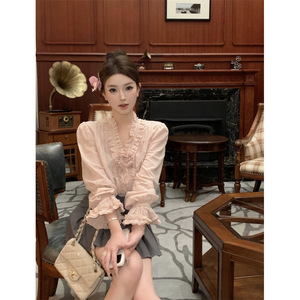 【月野花笺】法式木耳花边天丝玫瑰衬衫女设计感宽松垂感上衣