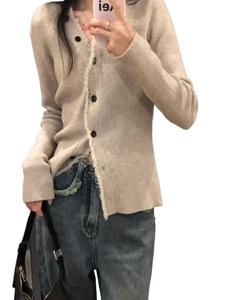 v领针织开衫女秋季2025年新款修身气质女单排扣内搭毛衣打底上衣