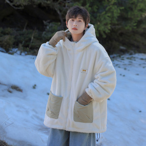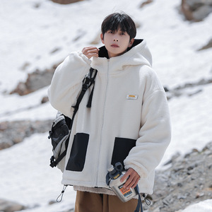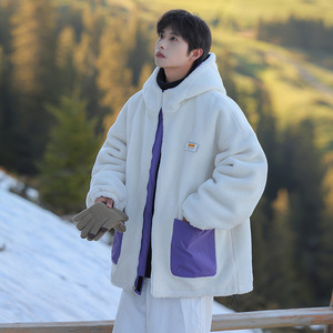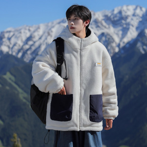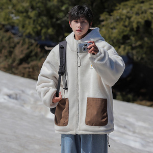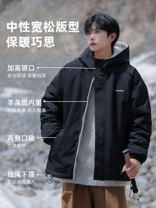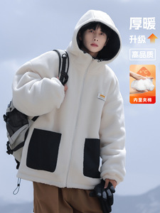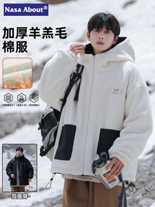 NASA双面穿羊羔绒棉衣男士秋冬季2025新款加绒厚保暖冬装棉服外套