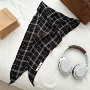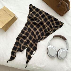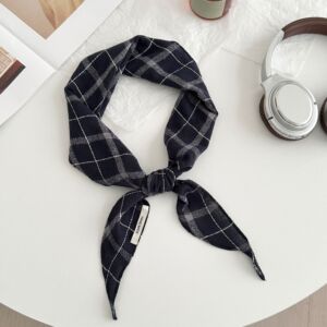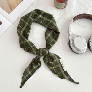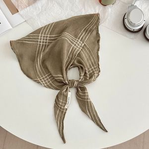 丝巾新款复古百搭格子包头巾发带多用护颈棉麻围巾多用三角巾系腰
