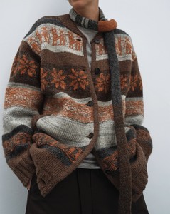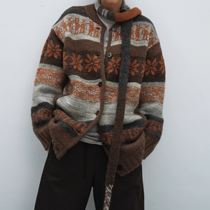 25年新品多层图案费尔岛提花开衫毛衣外套