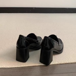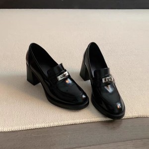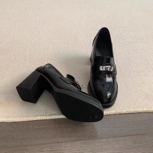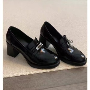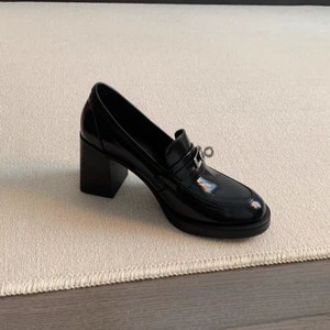 打版中~圆头复古金属锁扣高跟乐福鞋一脚蹬粗跟单鞋英伦风小皮鞋