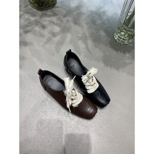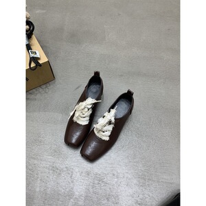 粗跟方头黑色系带小皮鞋单鞋女鞋子2025新款春秋季复古休闲乐福鞋