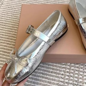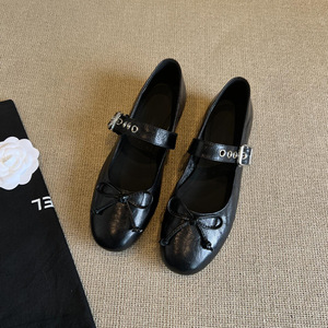 羊皮版~真皮平底蝴蝶结浅口芭蕾单鞋女2025新款法式复古玛丽珍鞋