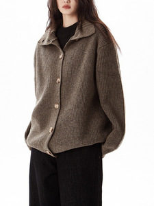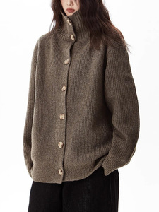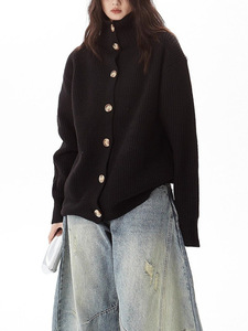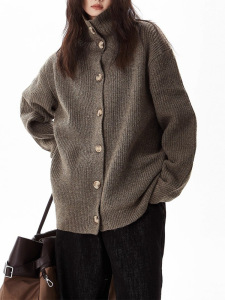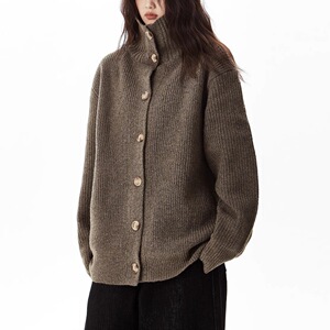 美式复古高领开衫毛衣男女秋冬宽松休闲百搭慵懒高级感针织衫外套