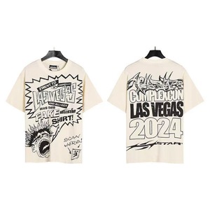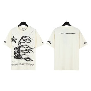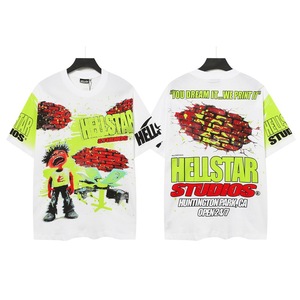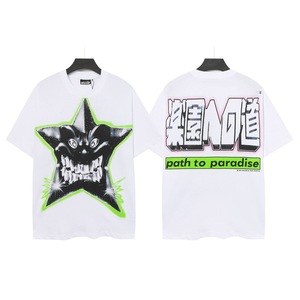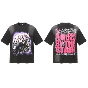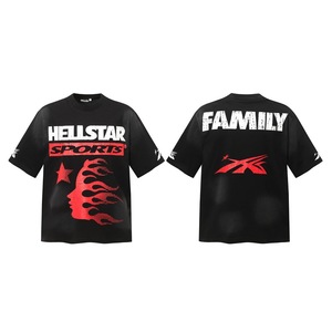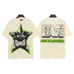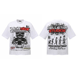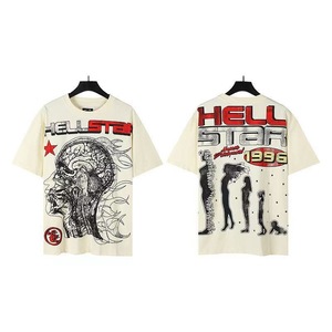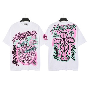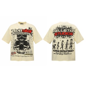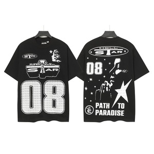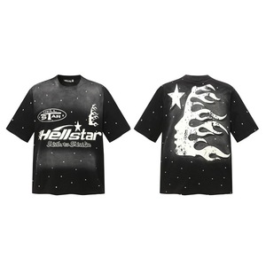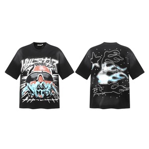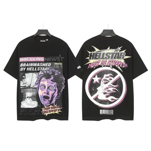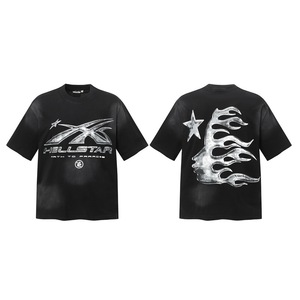跨境美潮ins同款地狱之星覆古印花夏季高街潮流休闲嘻哈短袖T恤男