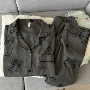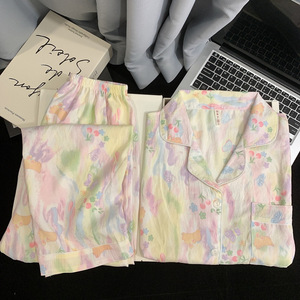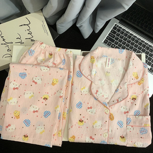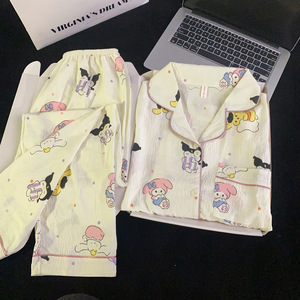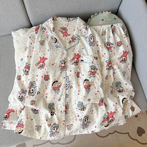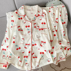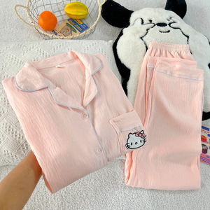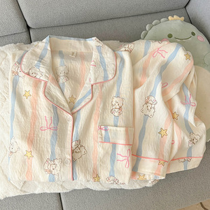 波点小狗卡通云朵纯棉纱睡衣女款2025新款春秋季长袖宽松家居服夏