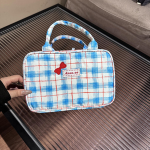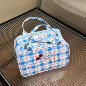蓝色格子化妆包包
