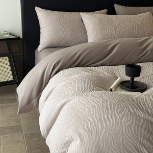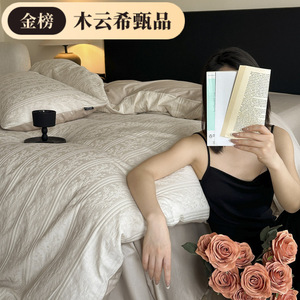 轻奢高级感100支全棉高支提花四件套简约轻奢贡缎纯棉床单床用品