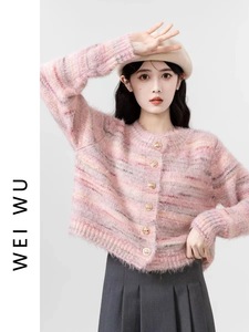 哥家商场同款女装2025秋季粉色圆领毛衣外套温柔软糯针织开衫上衣