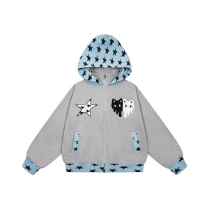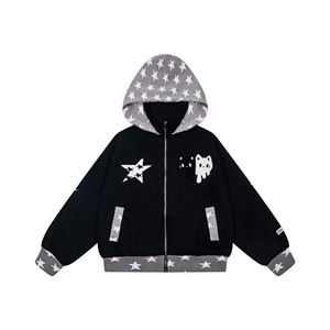 复古街头条纹撞色拼接星星连帽卫衣外套女宽松休闲百搭叠穿棒球服