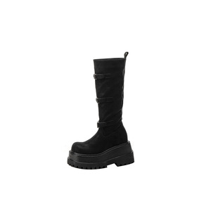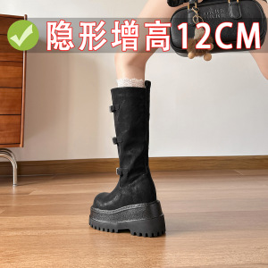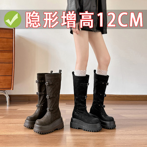 棕色复古英伦风粗跟厚底长筒靴女2025新款秋冬季显瘦长靴骑士靴子