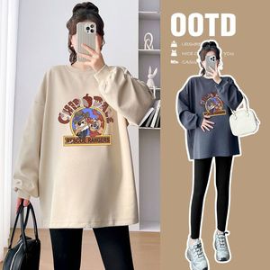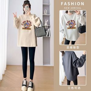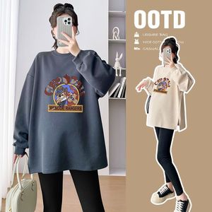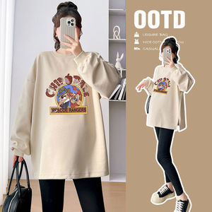 孕妇装纯棉卫衣春秋款上衣时尚中长款宽松休闲洋气减龄显瘦打底衫