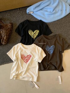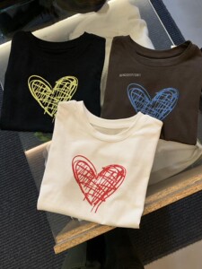 MZI STUDIO秋季简约质感线条爱心印花正肩套头圆领短袖T恤女13868