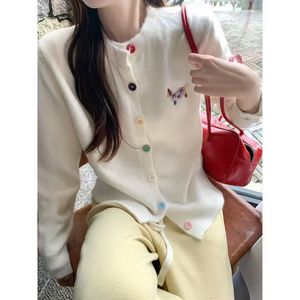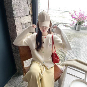 高级感彩色纽扣针织衫上衣早秋韩系温柔甜美风刺绣小狗毛衣开衫女