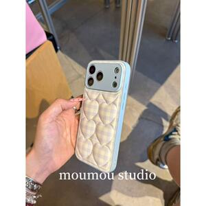 韩系ins蓝格纹刺绣爱心适用于苹果17/16promax手机壳15保护套1413