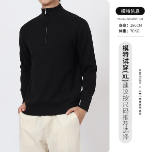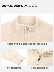 秋冬男装男士高领含羊毛针织衫轻奢高级感休闲保暖长袖半拉链毛衣