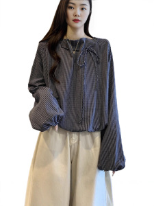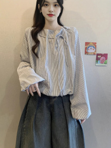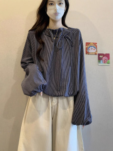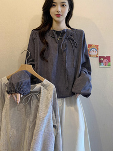 2025新款爆款条纹灯笼长袖衬衫秋季巨好看小衫宽松显瘦遮肚上衣女