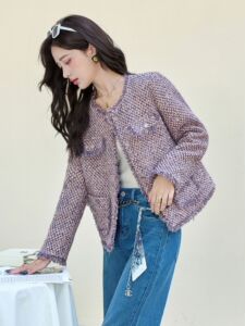 2025秋季女装新款粗花呢名媛气质高级感小香风毛呢外套女 YJ8629