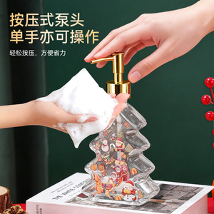 创意造型美观圣诞树洗手液玻璃瓶加厚玻璃洗手液瓶沐浴露玻璃瓶