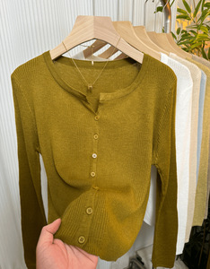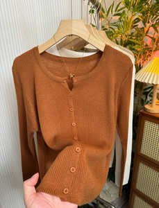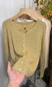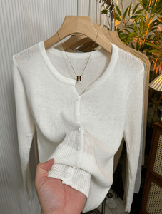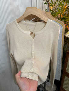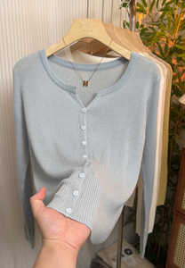 软糯坑条针织衫开衫女2025早秋新款洋气减龄显瘦外搭纯色V领上衣