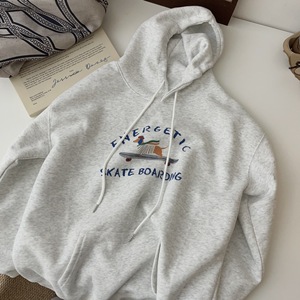 韩系简约休闲百搭减龄卡通连帽卫衣女秋季新款宽松休闲百搭上衣
