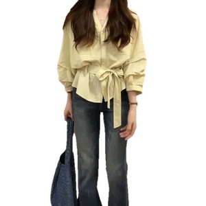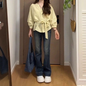 大码早秋穿搭胖mm慵懒韩系收腰衬衫新款宽松修身遮肉气质显瘦上衣