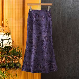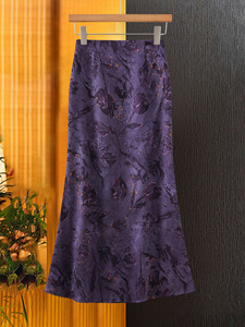 中国风暴富紫半身裙女洋气提花鱼尾裙气质百搭裙子秋装新款中长裙