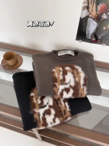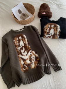 美式小狗印花针织套头毛衣女2025韩版新款慵懒风宽松百搭长袖上衣