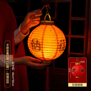 【手提】金盖灯笼(红圆)-纳福迎祥21