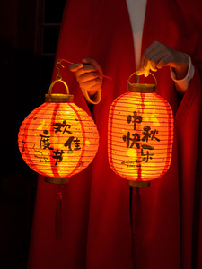 【手提】金盖灯笼(圆形)-中秋夜11红