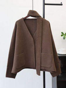 2025秋冬新款飘带针织双面呢开衫韩版宽松高级感气质毛衣外套女潮