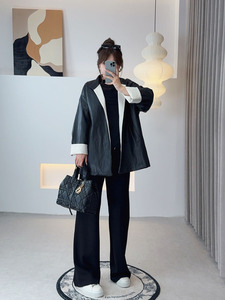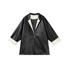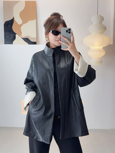 子元25秋季外套女休闲大码女装胖mm简约宽松PU女生秋天外套9116