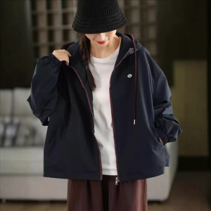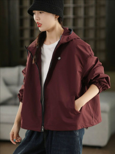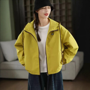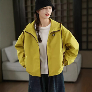 新品挺括短款抽绳下摆开衫长袖宽松连帽风衣外套