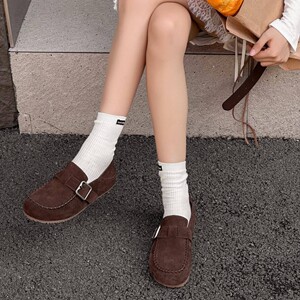 复古真皮勃肯鞋女2025秋季新款舒适软底休闲单鞋一脚蹬乐福豆豆鞋