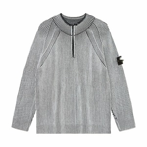 跨境Stone 石头经典款袖口贴标半拉链圆领落肩长袖包芯纱毛衣男女