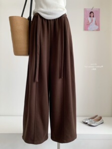 2025宽松直筒休闲裤子女秋季新款立体调性弯刀裤阔腿卫裤配腰带