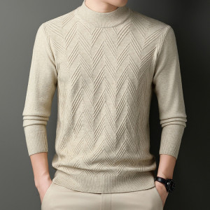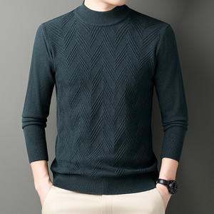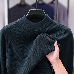 2025冬季新款重磅加厚保暖半高领针织衫男士中年简约百搭毛衣代发