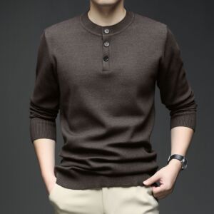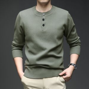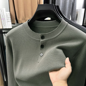 三粒扣圆领精纺男士毛衣2025秋季新款时尚休闲百搭打底针织衫男