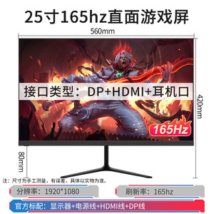25英寸直面白165hz+无边框 dp+hdmi-官方标配 顺丰包邮